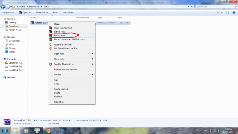 Bước 1: Vào thư mục đã tải AutoCAD 2007. Giải nén 32bit hay 64bit: