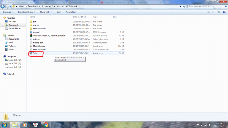 Tiến hành Crack AutoCAD 2007 --> vào mục crack trong thư mục mình đã giải nén.