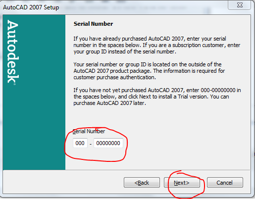 Bước 7: Nhập Serial Number 000-00000000 và Next: