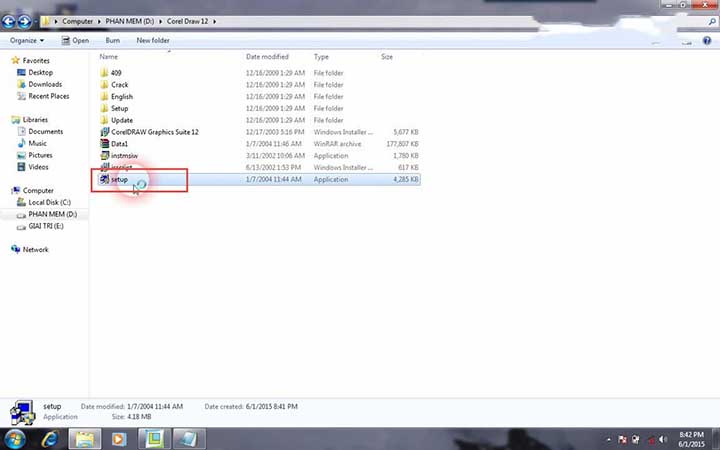 Bước 3: Chạy cài đặt phần mềm coreldraw 12 vào máy tính