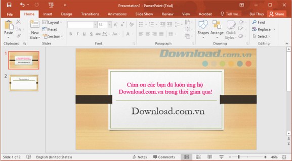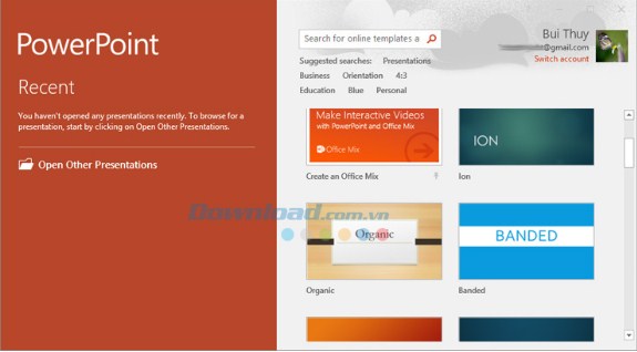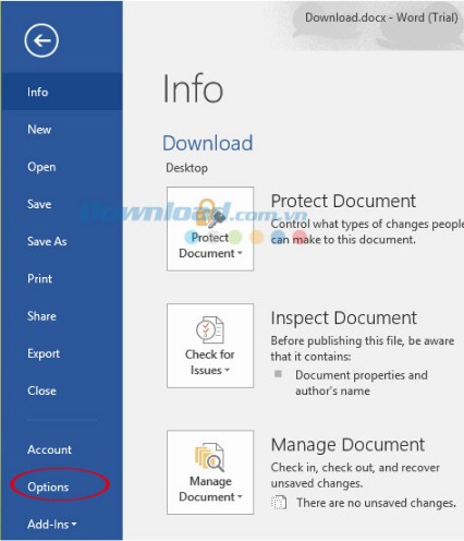 Không thay đổi so với bản Office 2013