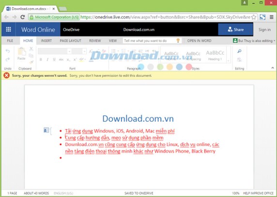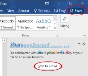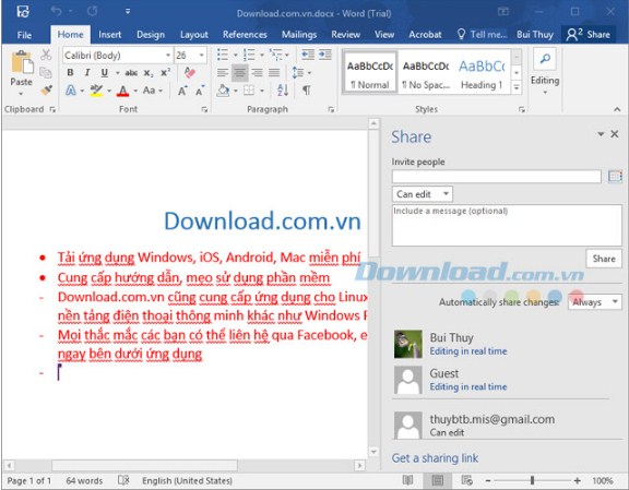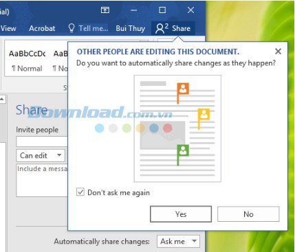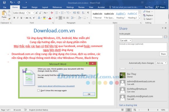 Khi đóng tài liệu đã chia sẻ Office 2016 cập nhật tài liệu với thay đổi tạo ra bởi người dùng khác.
