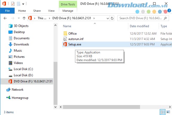 Kích vào Setup hoặc Setup.exe. Quá trình cài đặt sẽ bắt đầu ngay lập tức.