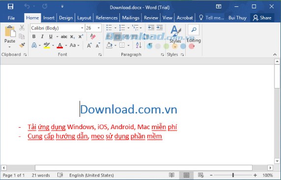 Cài đặt xong, mở Word, Excel rồi thực hiện theo các bước :