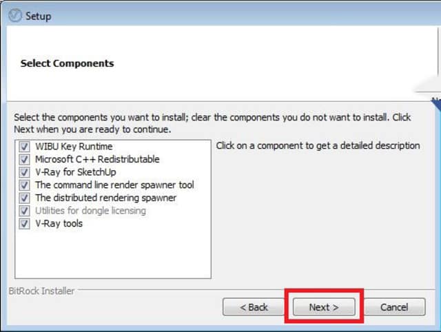 B4: Đến bước này thì hãy bỏ dấu tích ở ô đầu tiên (WIBU Key Runtime) => Next tiếp nhé